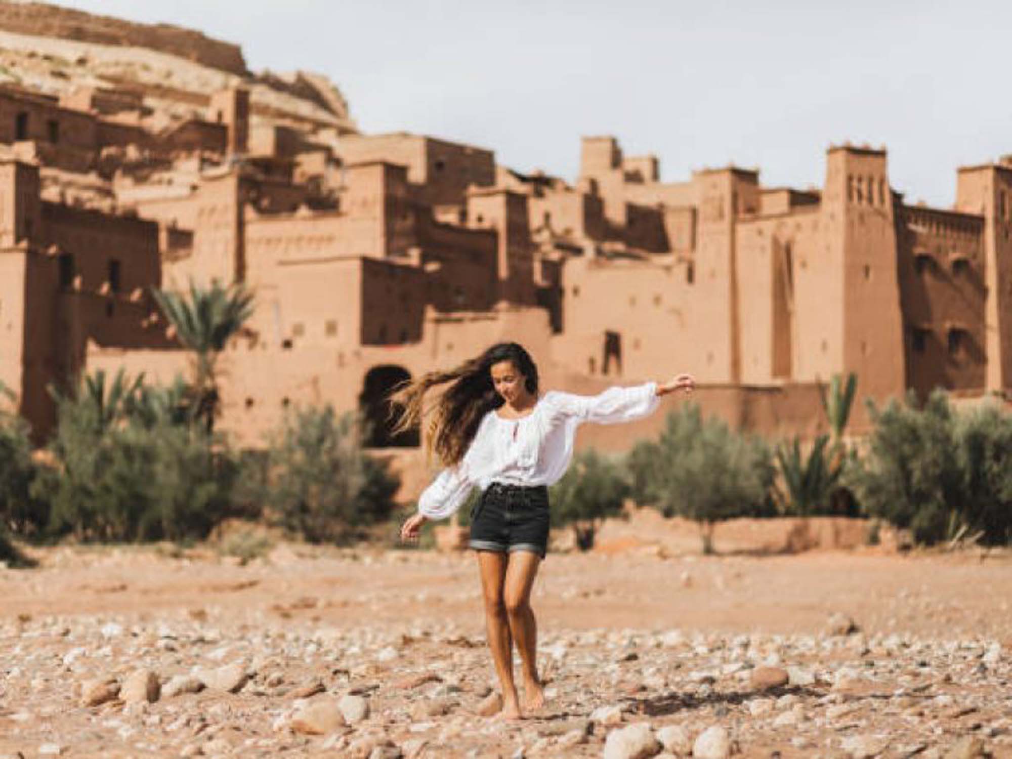 Te despertarás temprano para contemplar el amanecer sobre las dunas. Tras el desayuno y la ducha, saldremos hacia Rissani y luego a Tineghir, pasando por los pueblos de Touroug y Erfoud. Llegaremos a las impresionantes Gargantas del Todra, conocidas como el cañón más espectacular de Marruecos, famoso entre escaladores y senderistas. Continuaremos hacia Kalaa M’Gouna, donde visitaremos el Valle de las Rosas, famoso por su producción de productos de cosmética natural. Finalmente llegaremos a Ouarzazate, donde cenarás y pasarás la noche.