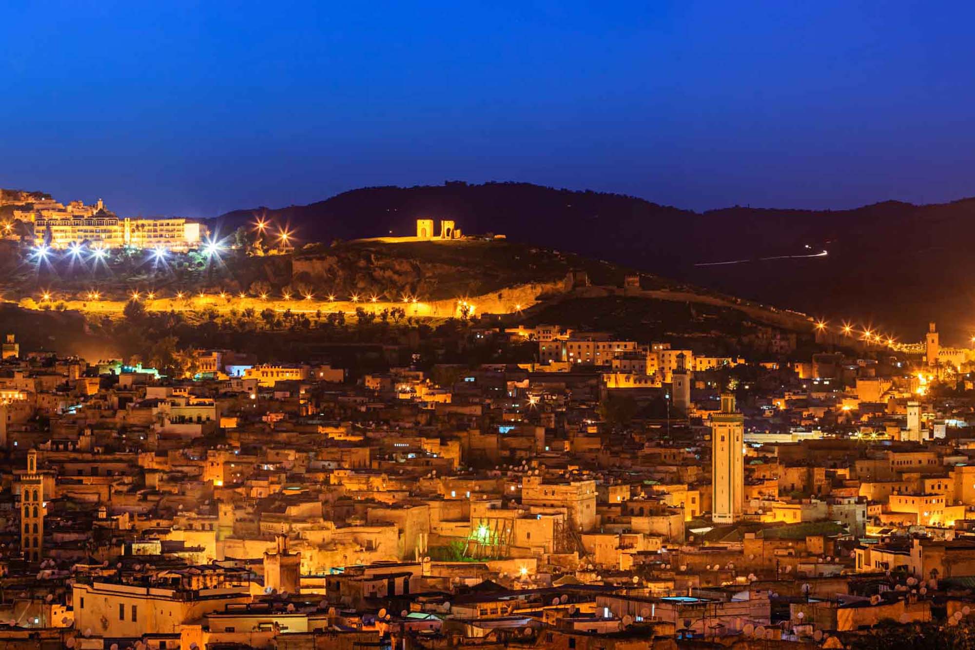 Al atardecer, comienza la experiencia más esperada: un paseo en camello por las dunas de Erg Chebbi, acompañando los tonos dorados del sol. En el campamento bereber, disfruta de una cena típica, música tradicional en vivo, sandboarding y una inolvidable noche bajo un cielo estrellado.
